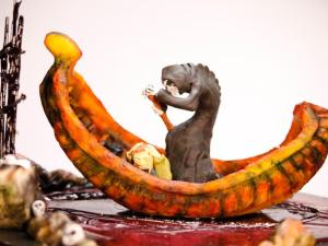 Week 2 of the Wars finds the remaining four teams battling it out with Grim Reapers, Vampires and Vamp Hunters. For the mini scare, the teams were tasked to create their interpretations of Death. One of the groups decided to go with what death means to a rat using a cat to represent the Reaper, another took the modern approach and had It emerging from a tablet implying that Death is so busy and has had to resort to emailing his notices of demise. Then there is the version pictured below of old Grim rowing down the river Styx with an unlucky soul.