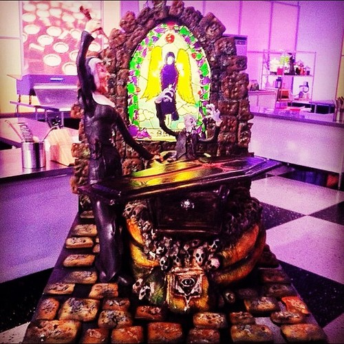 The big scare this week was vampires and vampire hunters and featured guest judge Rutina Wesley, Tara from HBO’s True Blood. I really didn’t like any of the final creations except for the winner shown below- a vampire hunting nun taking out the undead. Unfortunately, I don’t have any other images but really, this was the best one. The mini skulls surrounding the base of the casket are made from potatoes and they look pretty freaking cool.