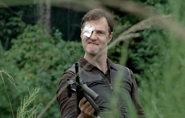 In Woodbury the citizens are putting up their barricades and getting back to life and the Governor is trying to make amends with Andrea after she found out that Glen and Maggie were being held in the town. He is pushing her to take on leadership and she is considering it but she wants to go to the prison to see her friends and Philip is not on board with that. The Governor also pays a visit to Milton to ensure that his loyalties still lie with him. Milton is a jittery little man but he is loyal. When Andrea goes looking for the Governor and his henchmen, Milton plays dumb really well: “Where is the Governor?” “On a supply run?” “Can you give a specific answer, where is he?” “On a run?”