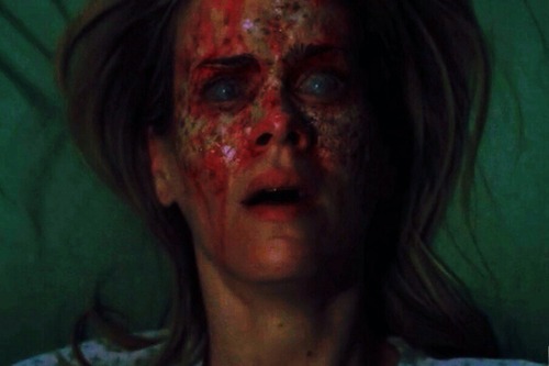 Meanwhile Cordelia is in the hospital, blinded from the acid attack and Fiona is all fucked up, emotionally and chemically. She wanders the hospital halls doped up, sees the person in black that blinded Cordelia and revives a dead baby before arguing with Cordelia’s husband Hank. And speaking of Hank; Cordelia has gained a new power with her blindness. When she touches Hank, she sees him screwing the redhead. Not sure what that ability is called but she is getting snippets of recent events when someone touches her.