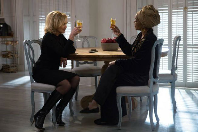 Queenie returns to the coven after being left for dead by Marie after Hank’s shooting spree. She is pissed and not alone. Queenie has put Madame Lalaurie back together and is dragging her around on a leash. As far where her rage is focused, Queenie is mad at Marie for leaving her for dead, she’s angry with Cordelia for marrying Hank and seems to hold her responsible for the shooting. She is very mean to Delia who is already fragile from her Mother’s tirade last week, telling her it is also her fault that Nan is dead and Misty is missing. What happens next doesn’t really come as a surprise.